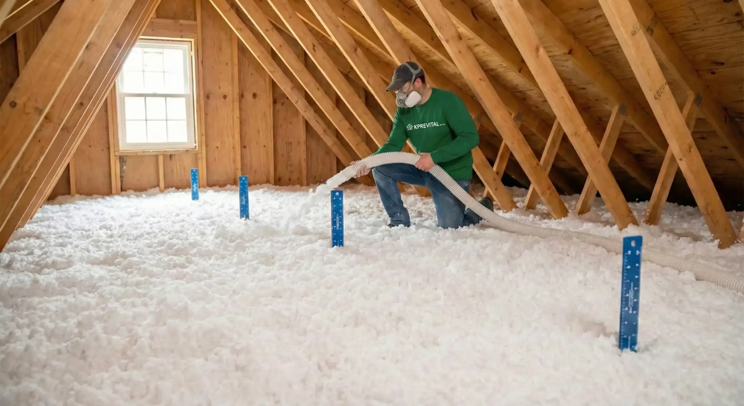 To je jako topit otevřeným oknem. Foukaná izolace od KP Revital to napraví během jediného dne, bez bourání, bez nepořádku a bez stresu. Vy jen večer přijedete domů a máte teplejší dům, nižší účty a vyšší komfort.